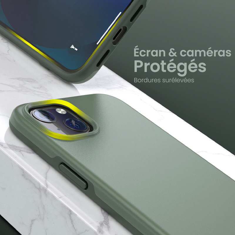 • La coque intègre un anneau magnétique puissant compatible avec le système Apple MagSafe.